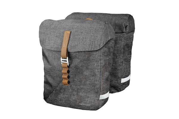Die Doppeltasche Heda für stilbewusste Radler aus dem Modelljahr 2016 passt an alle Racktime Systemgepäckträger mit Snapit-System. Es gibt sie auch solo als Taschenserie Mia. Die Satteltaschen mit ca. 25 Liter Packvolumen sind aus wasserabweisendem Polyester gefertigt, mit Lederriemen, Reflektorstreifen, Aluminiumhaken und zwei Innenfächern. Durch das Racktime Gepäckträgersystem lassen sich die Taschen einfach mit dem angebrachten Snapit-Adapter einrasten und am Ende der Fahrt leicht vom Gepäckträger abnehmen.