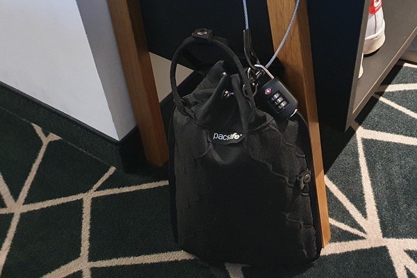 Seit dem Sommer 2022 ist der Travelsafe der Marke Pacsafe unser mobiler Reisesafe. Auf Geschäftsreisen und in den Büros von externen Unternehmen ebenso wie am Strand haben wir dem Travelsafe unsere Wertsachen anvertraut. Das hatte zwei Gründe: Der Travelsafe besitzt zum einen in seinem Inneren ein schnittfestes Edelstahgeflecht und kann zum anderen mit dem festmontierten Stahseil zu- und angeschlossen werden. Beides erschwert einen schnellen Zugriff für Unbefugte erheblich. Das gibt ein gutes Sicherheitsgefühl, wozu auch die sehr hochwertige Verarbeitung der Wertsachen-Tasche beiträgt.