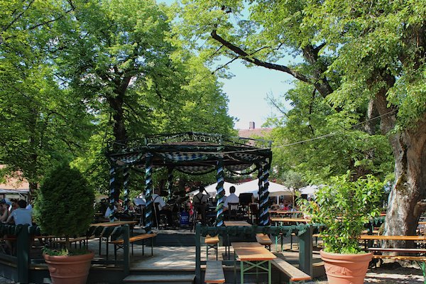 Schön gelegenes Restaurant mit Biergarten in Pullach bei München. Mit Pavillon, in dem regelmäßig Jazzbands spielen, leckeren Schmankerln der bayrischen Küche, Steckerlfischen, Kaffee und Kuchen und viel Schatten unter den Kastanien.